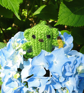 I knit this little guy for a friend's birthday in July. I usually like to knit the mochimochi out of worsted because it's a little less fiddly. He's still tiny, just not teeny-tiny.
